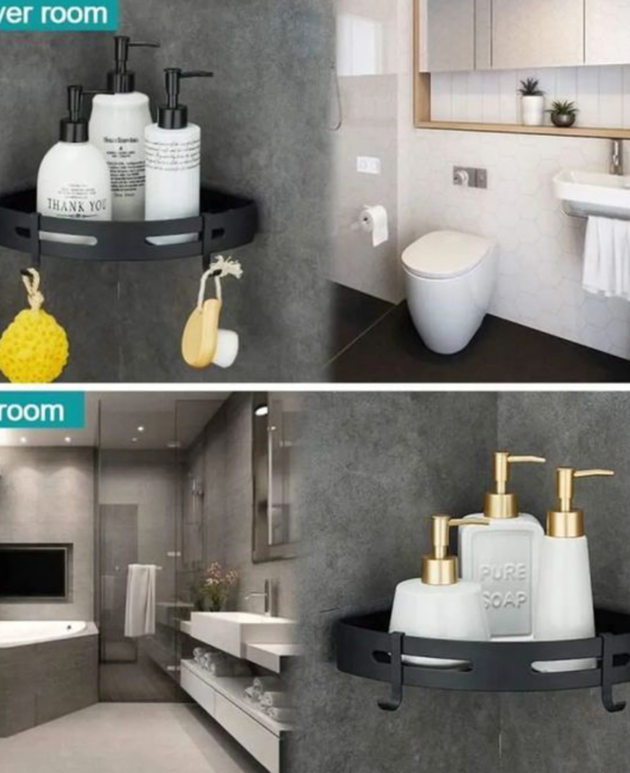 Mur applicable et conseils chaleureux: s'il vous plaît installer etagère de douche d'angle sur une surface lisse et solide et garder le mur propre et sec avant l'assemblage. Porte gel douche salle de bain convient à toutes sortes de murs (murs lisses en marbre/carrelage/métal/verre/bois franc). Ne convient pas pour le plâtre, le papier peint ou les murs peints. Si vous l'installez avec un autocollant, évitez de coller sur la fente de la tuile, car elle doit suffisamment presser l'air.