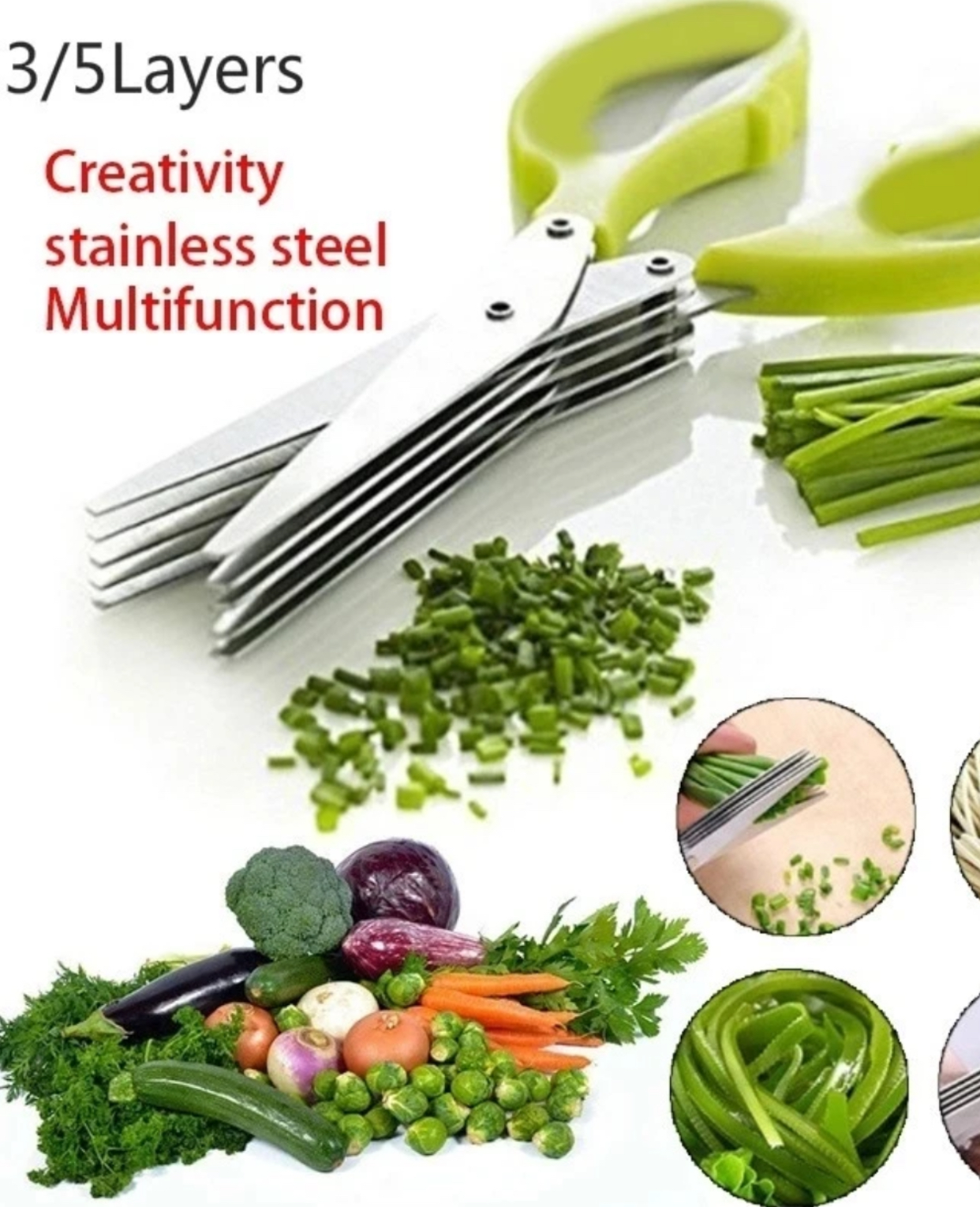 Muti-Layers Kitchen Scissors Onion Scissors Stainless Steel Vegetable Cutter Scallion Herb Laver Scissors Kitchen Accessories